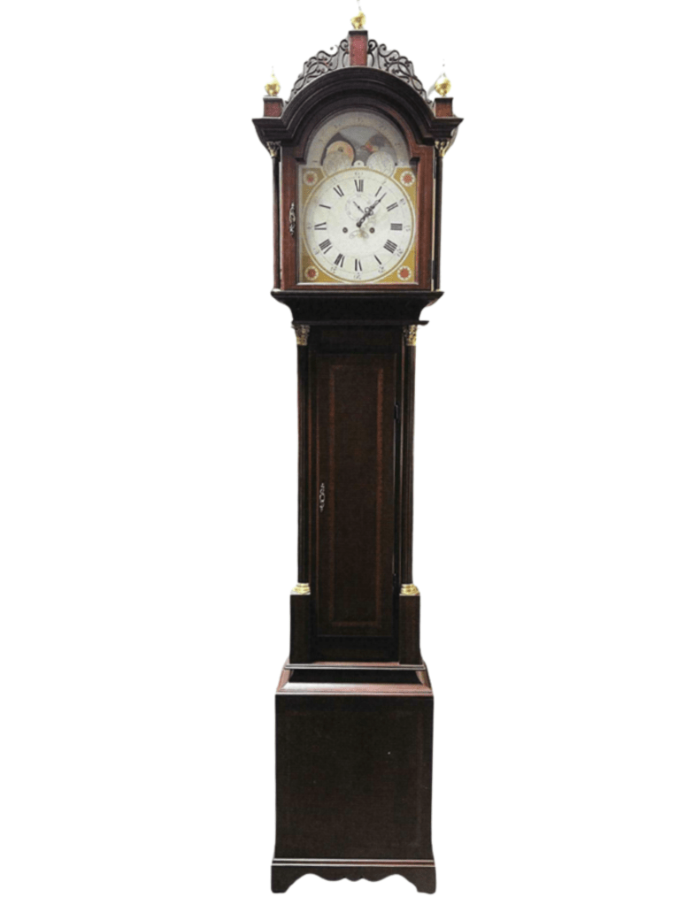 See the photos to the left for an example of a fully custom clock built from scratch – an exact replica of the grandfather clock in the Oval Office of the White House. After tedious hours of drawings and details, the end result was amazing – with intricate inlays and a custom hand-painted dial, this was our most custom clock to date.