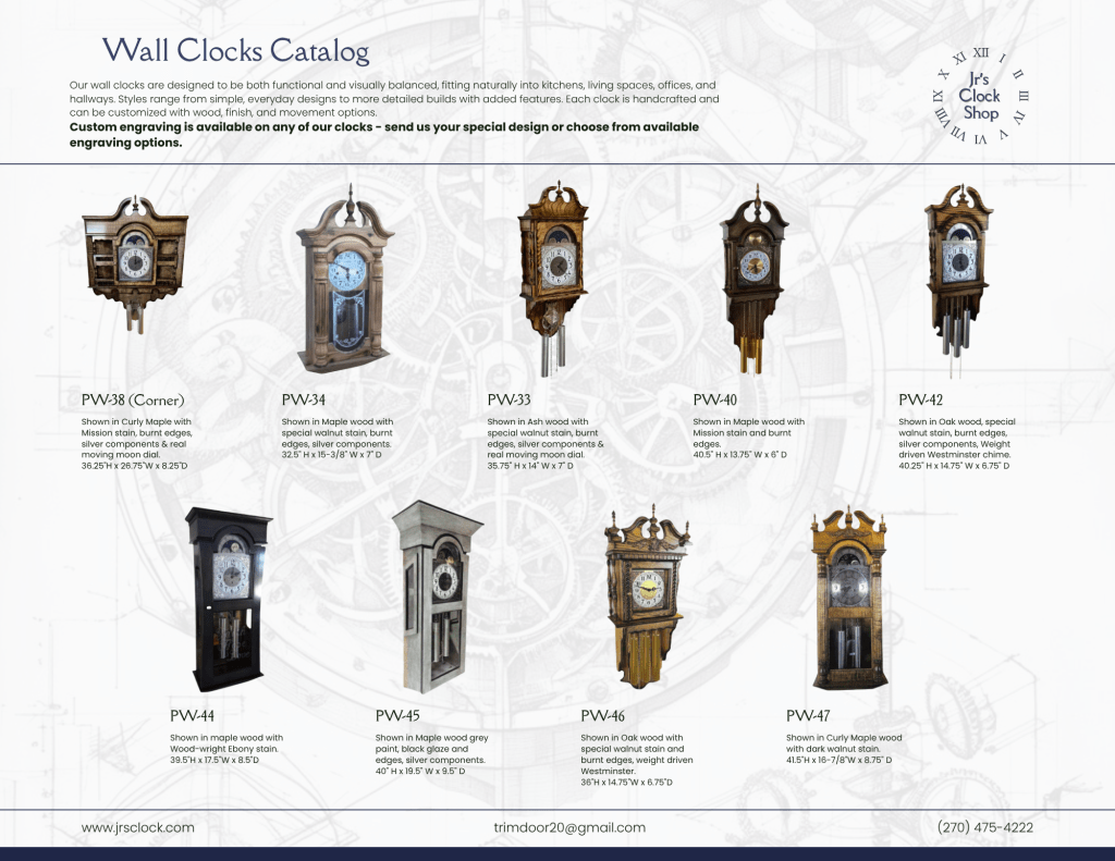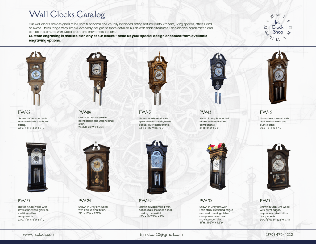 Each wall clock is built by hand and can be customized with your choice of wood, stain, and movement. Some models also allow for additional details, such as glass sides or decorative accents. Whether you’re furnishing a space or choosing a meaningful gift, wall clocks offer a versatile option that balances craftsmanship with everyday use.